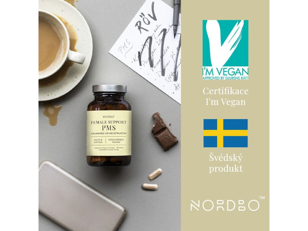 Female Support PMS není jen další jednoduchý doplněk, ale sofistikovaný komplex pokročilých bioaktivních složek pro podporu žen během PMS a menstruace. Je zaměřený na psychický i fyzický pocit pohody a hormonální stabilitu a obsahuje složky se studiemi prověřenými vlastnostmi. Šafrán patří mezi přední přírodní látky pro psychickou stabilitu během PMS. Female Support PMS obsahuje extrakt ze šafránu vyráběný pod ochrannou známkou Saffr'Activ®. Vlastnosti šafránu souvisejí s neurotransmitery, látkami, které ovlivňují pocit pohody. Šalvěj a červený jetel mají vlastnosti související s fyzickou stránkou menstruace, návaly horka a pocením.